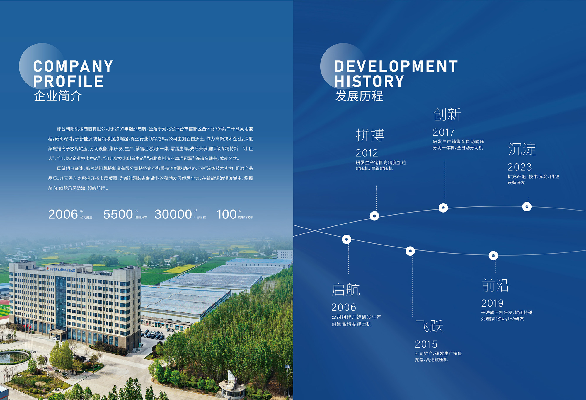 邢臺(tái)朝陽(yáng)機(jī)械制造有限公司是新能源裝備領(lǐng)域的璀璨之星,位于河北省邢臺(tái)市信都區(qū)會(huì)寧鎮(zhèn)(邢臺(tái)會(huì)寧綜合物流聚集地) 70 號(hào),自2006 年成立以來(lái),歷經(jīng) 20 年砥礪奮進(jìn),已成長(zhǎng)為新能源裝備領(lǐng)域的行業(yè)領(lǐng)軍者。公司占地 100 余畝,是集鋰離子電池極片... [更多>>]