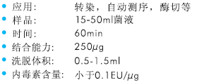該試劑盒專門設(shè)計(jì)快速地從培養(yǎng)過夜的細(xì)菌中純化低內(nèi)毒素的質(zhì)粒DNA,內(nèi)毒素含量小于0.1EU/ug。純化的質(zhì)粒可直接用于測序、細(xì)胞轉(zhuǎn)染、動(dòng)物注射、酶切等各種用途。質(zhì)粒的產(chǎn)量依賴于質(zhì)粒的拷貝數(shù)、E.coli菌株以及生長條件,對于低拷貝菌株一次操作量可以高達(dá)100mL。