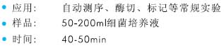 從50-250mL培養(yǎng)過(guò)夜的菌液中提取BAC/PAC/P1等大片段質(zhì)粒DNA