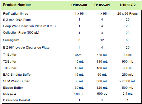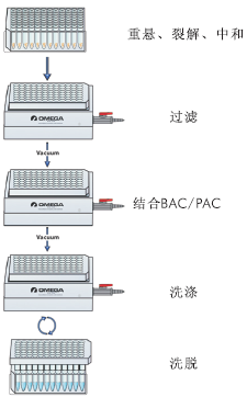 E-Z 96® Fastfilter BAC/PAC DNA Kit提供了快速、可靠、高通量純化出BAC/PAC/P1等大型質(zhì)粒DNA的方法,采用堿裂解方式裂解細(xì)胞后通過(guò)E-Z 96® Lysate Clearance Plate進(jìn)行去除菌裂解液中的雜質(zhì),然后通過(guò)E-Z 96® DNA Plate進(jìn)行純化BAC/PAC/P1等大型質(zhì)粒DNA。