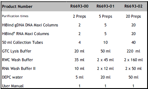 從<5×108個細胞/<1g組織中提取高達5mg總RNA