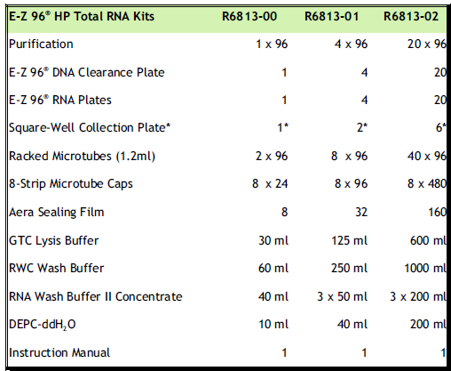 基于E-Z 96® HP Total RNA Kit I(R6812)一樣的原理,該試劑盒專門設(shè)計(jì)高通量地從96個(gè)培養(yǎng)細(xì)胞樣品或動(dòng)物軟組織樣品中提取總RNA。每一個(gè)孔可處理高達(dá)1×106培養(yǎng)細(xì)胞或<10mg的動(dòng)物軟組織。該純化系統(tǒng)帶有DNA過濾板,可高效去除DNA污染。純化的RNA可直接用于各種下游應(yīng)用。