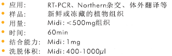 從<500mg新鮮或冷藏的植物組織中提取高達500ug的總RNA