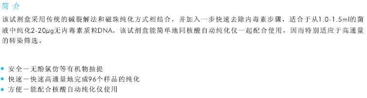 磁珠法無內(nèi)毒素質(zhì)粒小量提取試劑盒